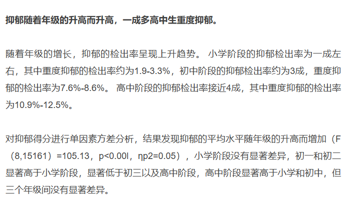 根据2020年中国国民心理健康蓝皮书 - 网易 中的报告中显示,2020年青少年的抑郁检出率为24.6%,其中,轻度抑郁的检出率为17.2%,高出2009年0.4个百分点。重度抑郁为7.4%,与2009年保持一致。
